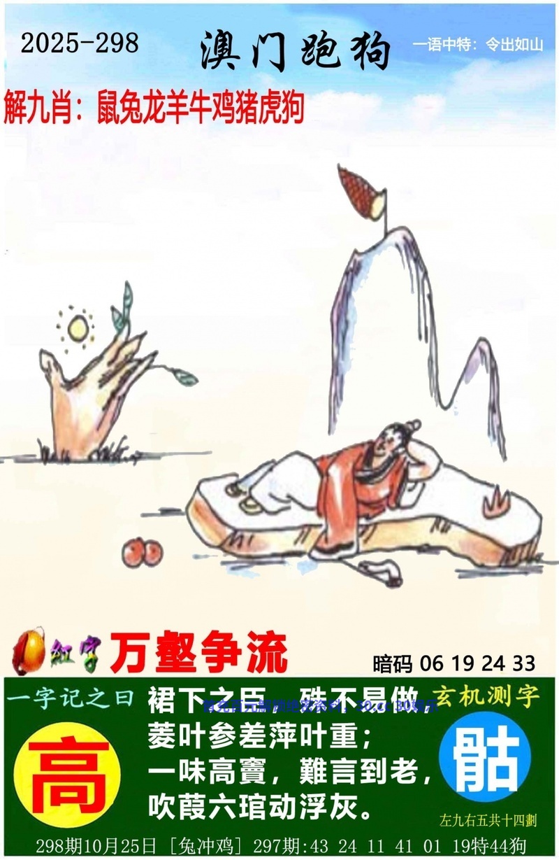| 295期九肖:雨肖 | 必中⒓码:01.25.24.35 | |