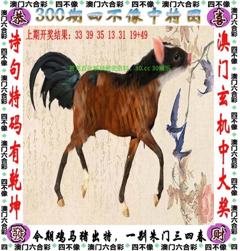 | 301期:★绝杀三肖★【兔猪虎】开:發00中 |